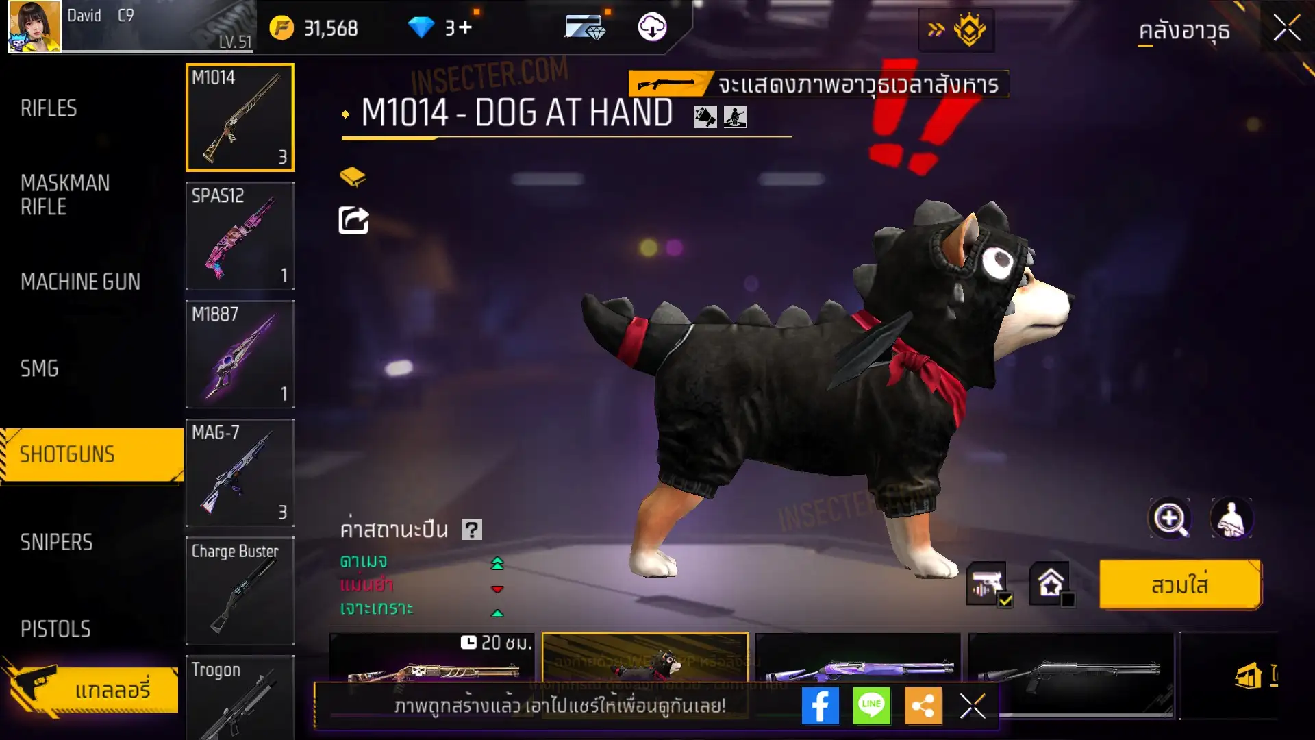 ข้อมูลย่อ : ปืuทำ7/7ได้ กากไฟคู่สวยๆ ซองชิบะ หมัดสายฟ้า หัวขาว ไอซ์อวอลสายฟ้า เรดไรท์คู่ เกงปีกนกแดงญ. เกงช้าง ชุดพี่ตูน เกงเบสบอล ตาม่วง แจ๊คเก๊ตบลู เสื้อเอมซี เกราะRUOK คอเต่า สักขาว ชุดกล้าม นักโทษ เสื้อลาส เปิดตัว1ท่า