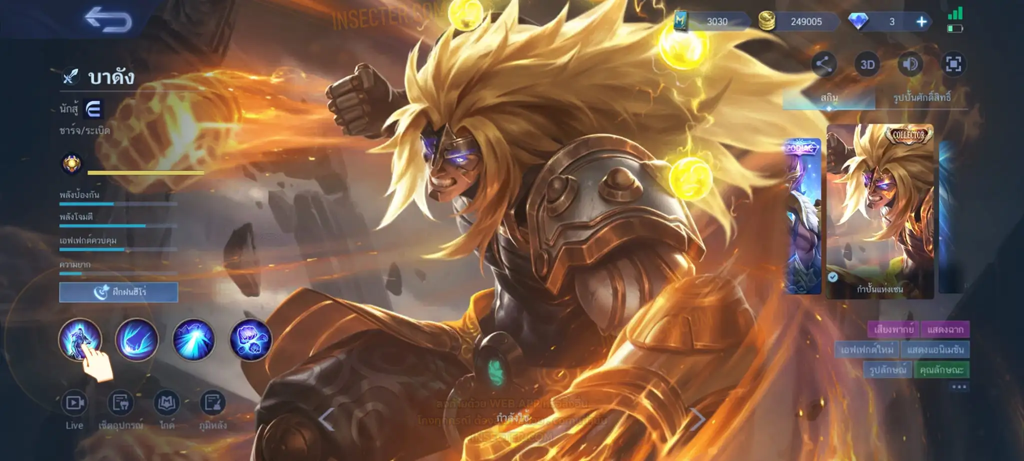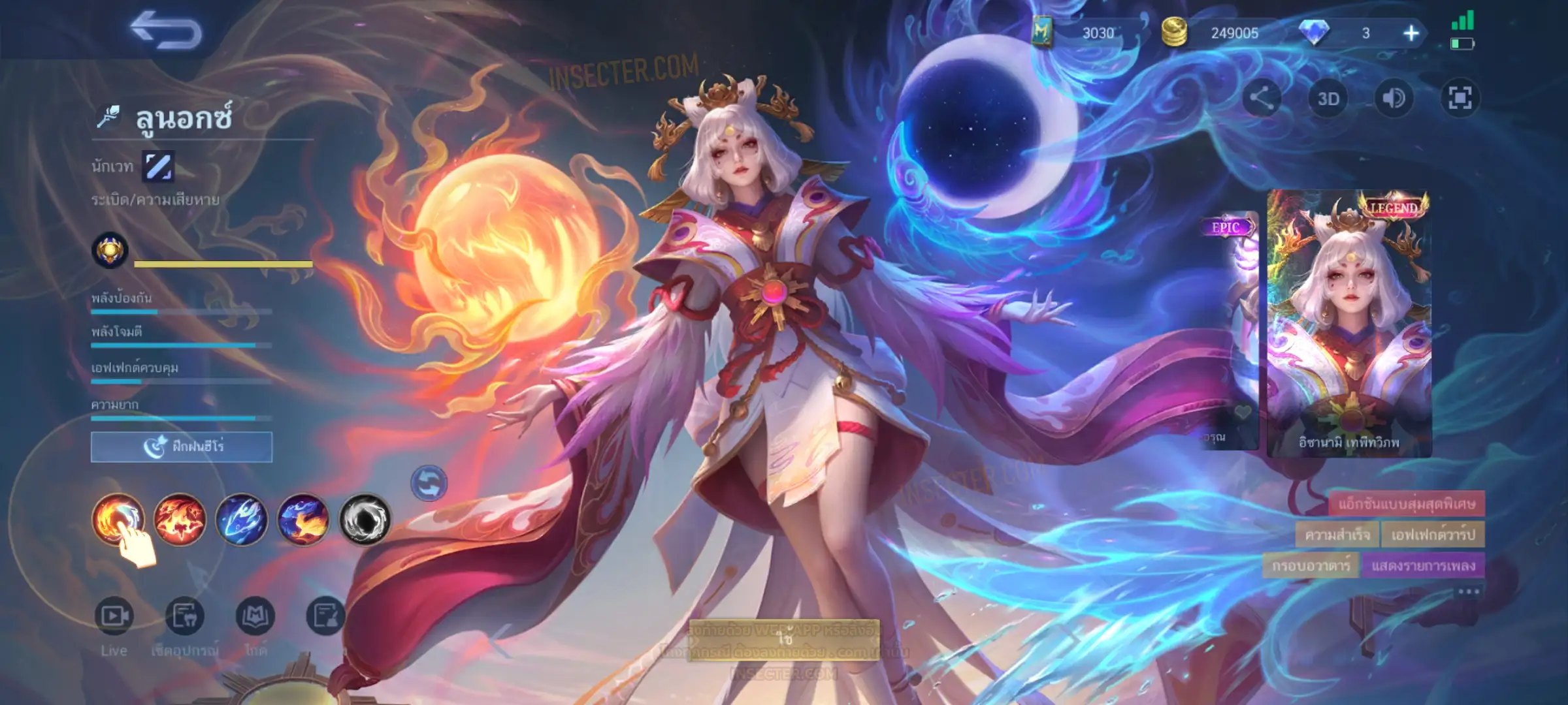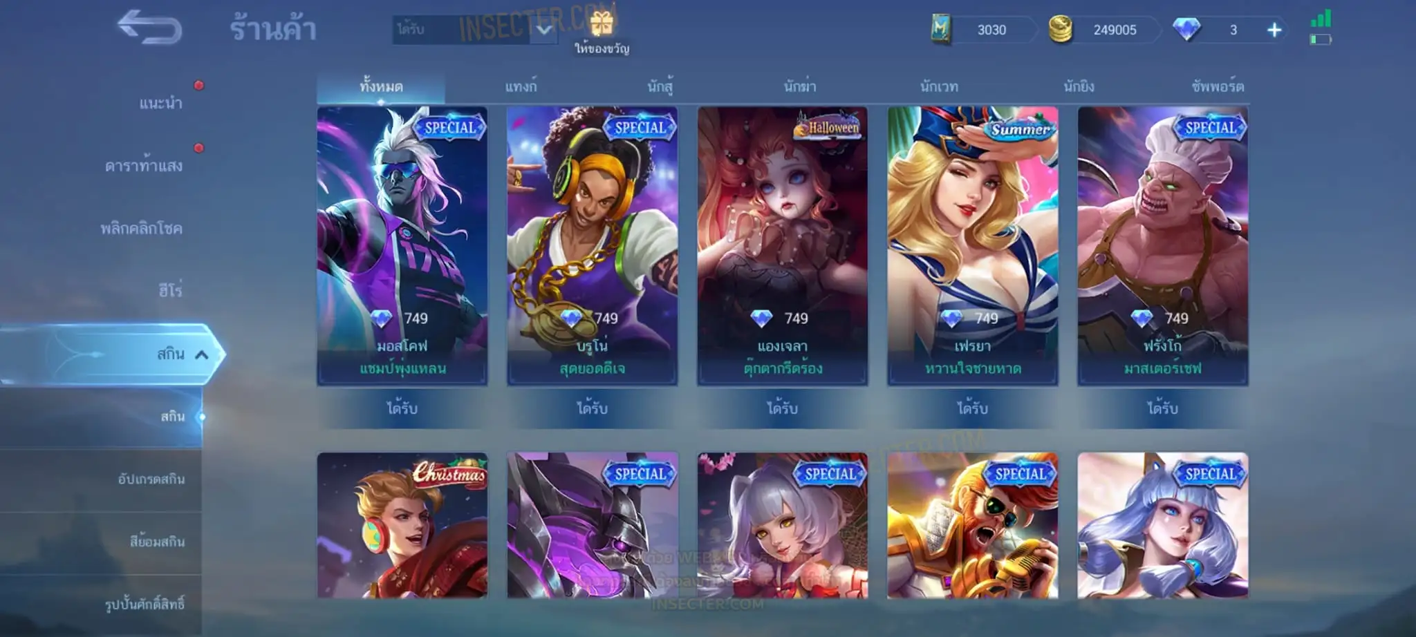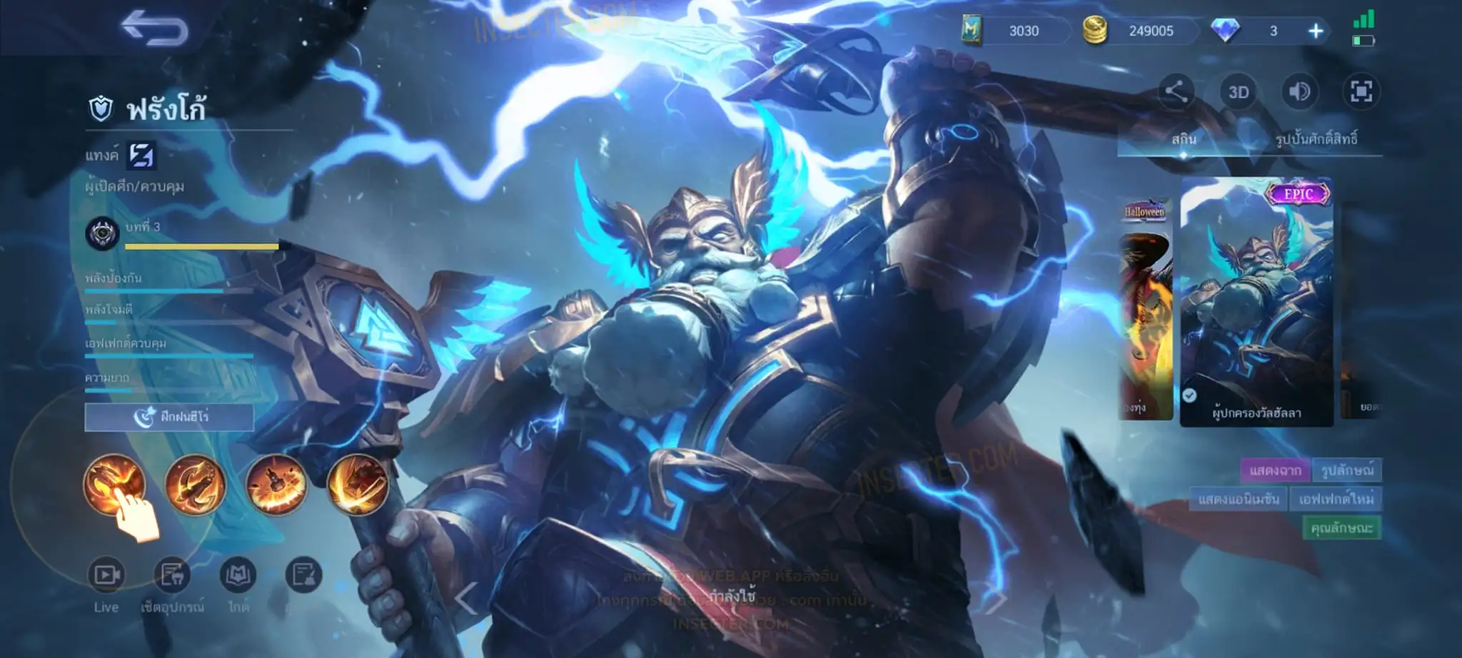 ข้อมูลย่อ : Hero 122 Skin 508 เอ็มเบลตัน/วาร์ปแรร์ มงกุฎไฟ Epic ถาวร และอื่นๆ !!! ตั๋ว 3,000 ทอง 249,000 Legend 5 ตัว Collector 4 ตัว อนิเมะ 20 ตัว Zodiac 13 ตัว (ครบ) !!! Epic ธรรมดา/แรร์ 30 ตัว Special ธรรมดา/แรร์ 48 ตัว Ster/Champion/MSC/Luner/Christmas/Valentine/Halloween/515/AS/MDI/Create/ Limited 42 ตัว ถ่ายมาบางส่วนยังไม่รวม Elite/Season/Ster คอลเลคชั่นอื่นๆ