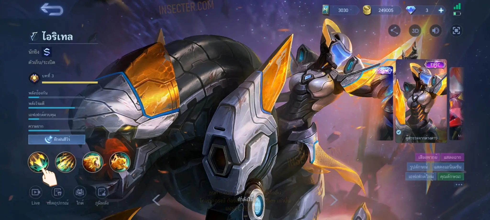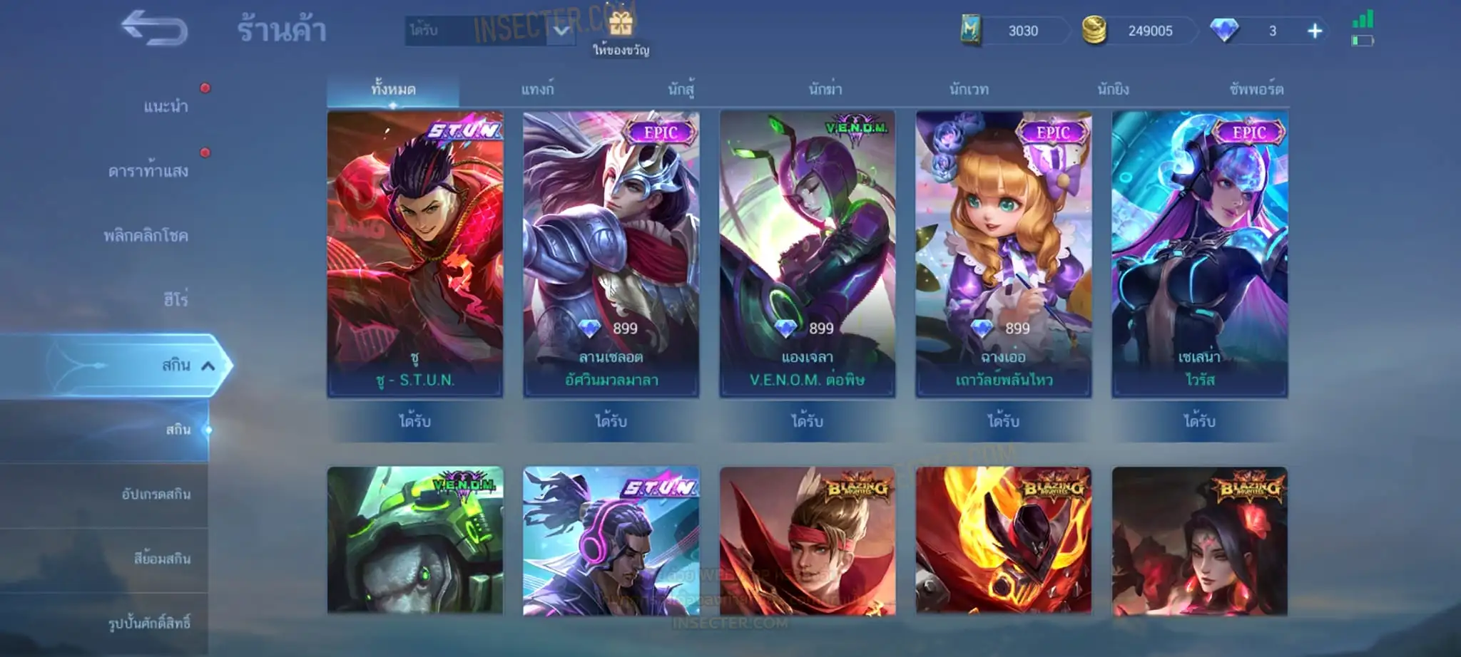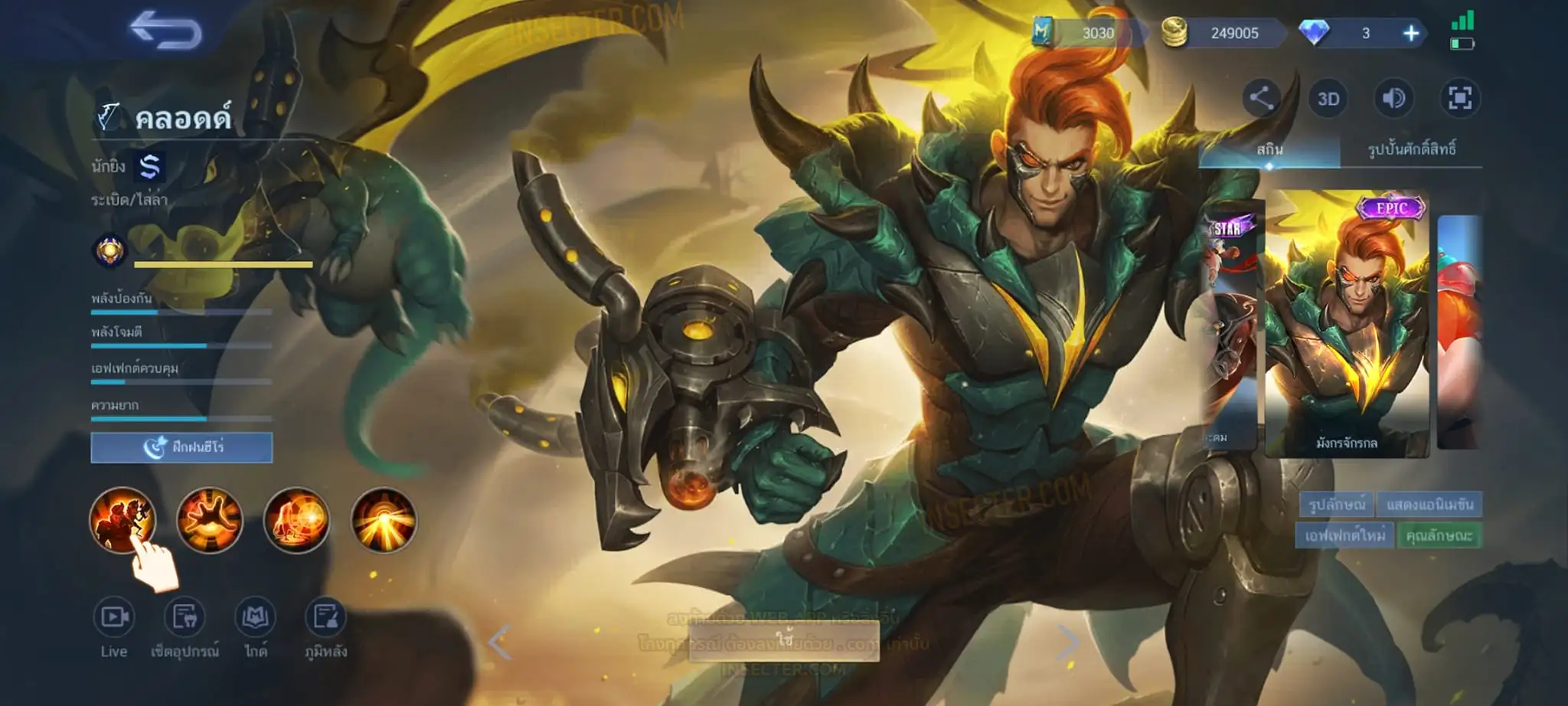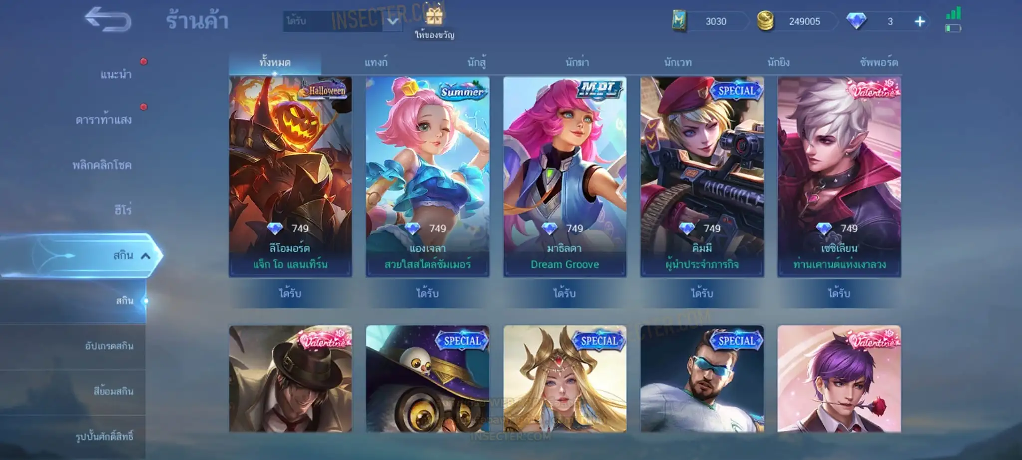 ข้อมูลย่อ : Hero 122 Skin 508 เอ็มเบลตัน/วาร์ปแรร์ มงกุฎไฟ Epic ถาวร และอื่นๆ !!! ตั๋ว 3,000 ทอง 249,000 Legend 5 ตัว Collector 4 ตัว อนิเมะ 20 ตัว Zodiac 13 ตัว (ครบ) !!! Epic ธรรมดา/แรร์ 30 ตัว Special ธรรมดา/แรร์ 48 ตัว Ster/Champion/MSC/Luner/Christmas/Valentine/Halloween/515/AS/MDI/Create/ Limited 42 ตัว ถ่ายมาบางส่วนยังไม่รวม Elite/Season/Ster คอลเลคชั่นอื่นๆ