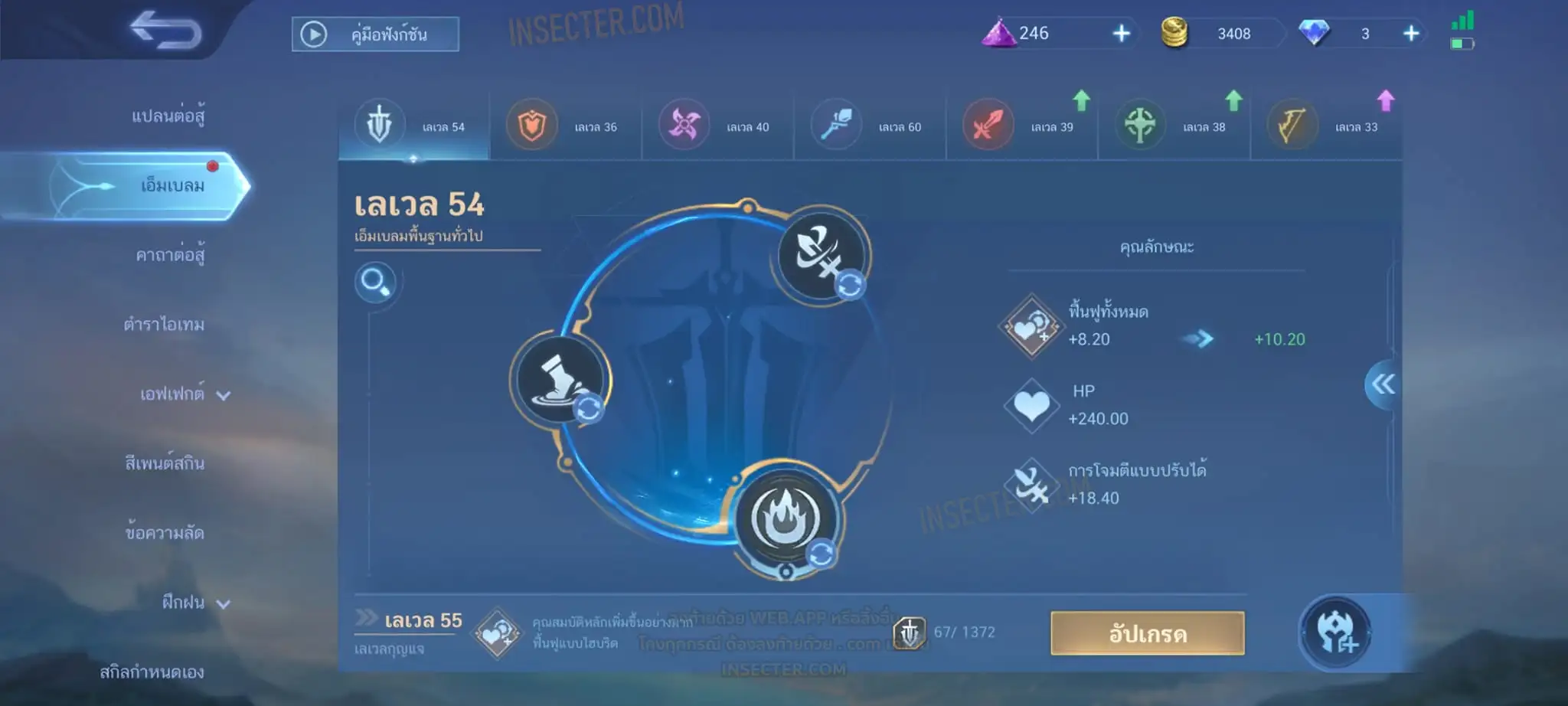 ข้อมูลย่อ : Hero 39 Skin 108 เอ็มเบลสายเวทย์ตัน/วาร์ปปีกพิพากษา แสงดาว ปี 2022 แก่นพลังเวท 80 (ครบ 200 แลก Skin Legend 1 ตัว) 1.เบเนเด็ตตา Collector 2.รูบี้ อนิเมะ 3.แองเจลา อนิเมะ ถ่ายมาบางส่วนยังไม่รวม Skin Special/Elite/Season/Ster คอลเลคชั่นอื่นๆ