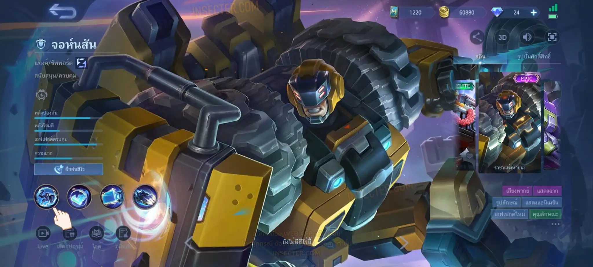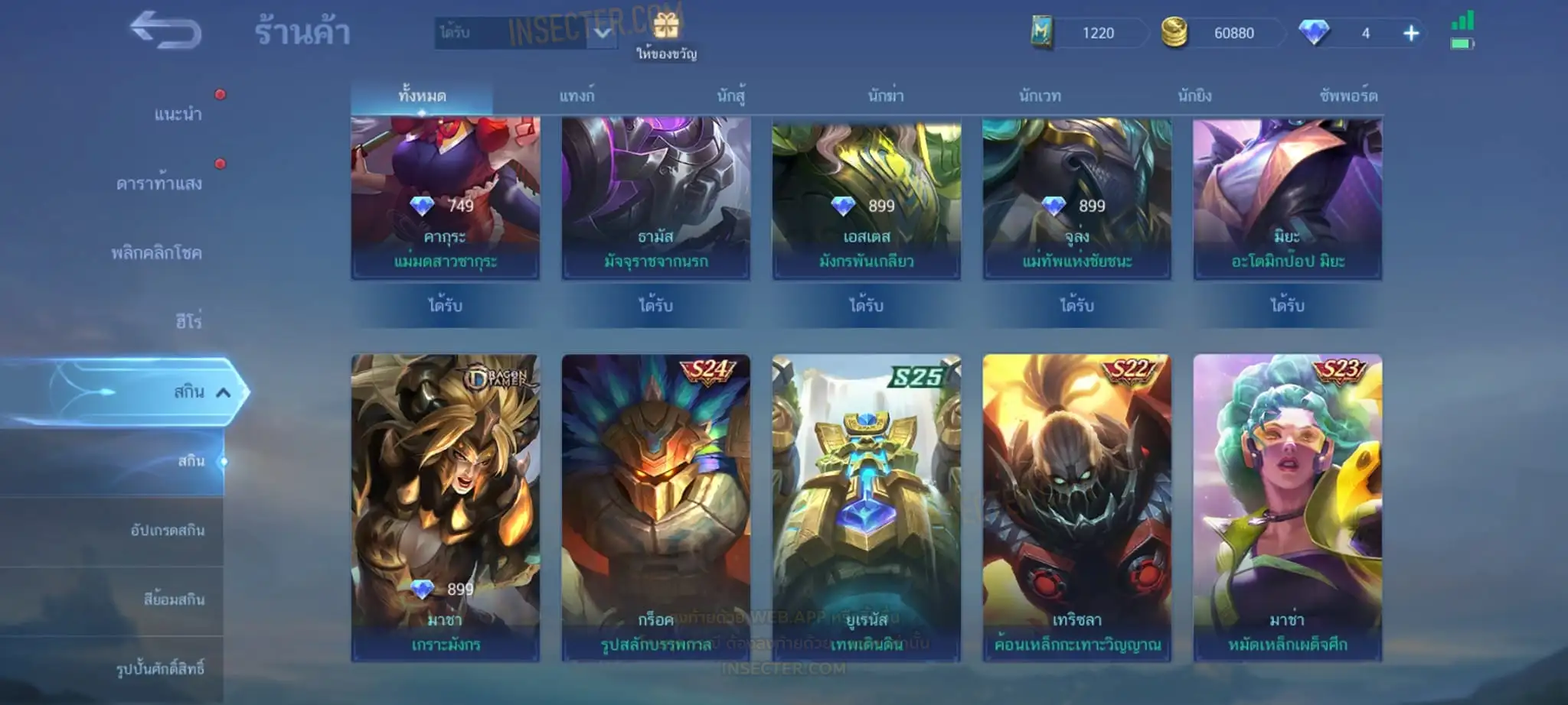 ข้อมูลย่อ : Hero 55 Skin 94 เอ็มเบล 90%/วาร์ปแรร์มือปราบ ถาวร ครบเซ็ต !!! 1.อวีจง Exorcists 2.มิยะ Atomic 3.จอห์น Epic แรร์ 4.บาดัง เซย์ยา 5.บรูโน่ เนย์มาร์ ถ่ายมาบางส่วนไม่รวม Skin Season/Ster คอลเลคชั่นอื่นๆ