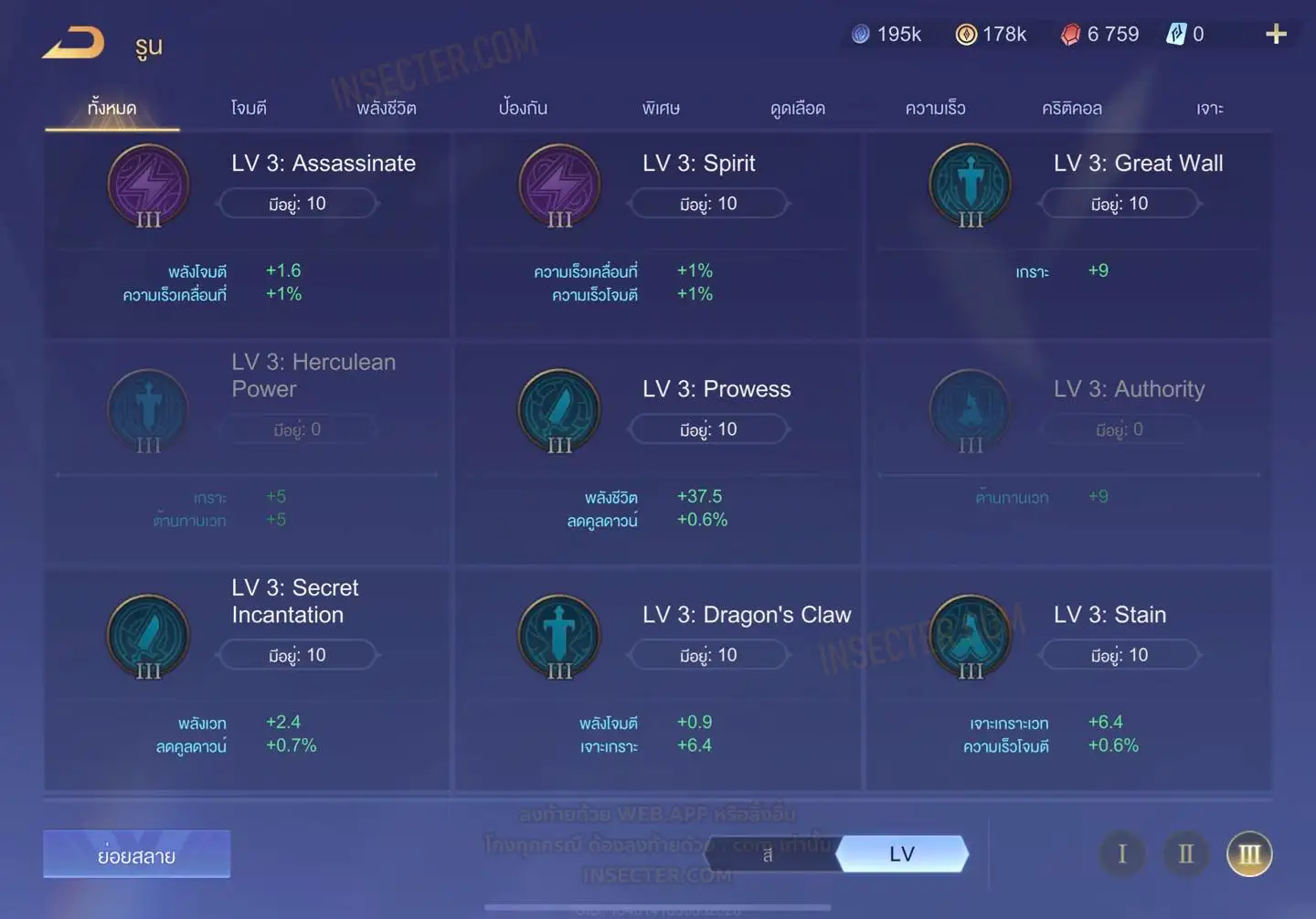 ข้อมูลย่อ : HERO 115 SKIN 395 สกินแรร์อนิเมะครบ รูน 30 หน้า