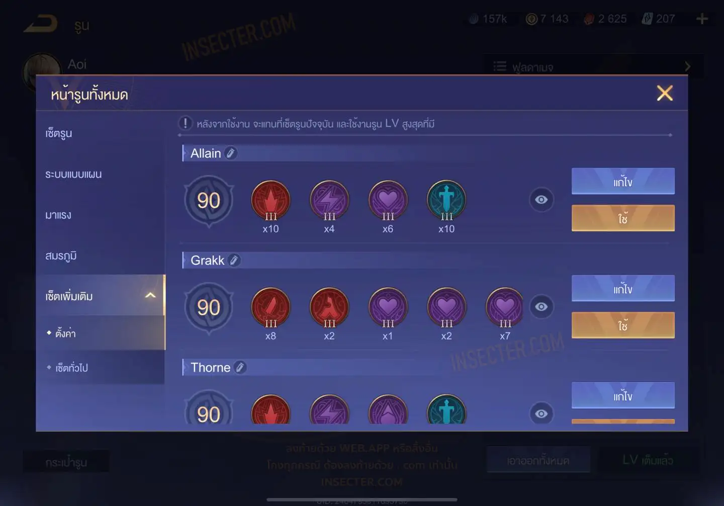 ข้อมูลย่อ : HERO 115 SKIN 263 สกินแรร์เพียบ รูน 30 หน้า