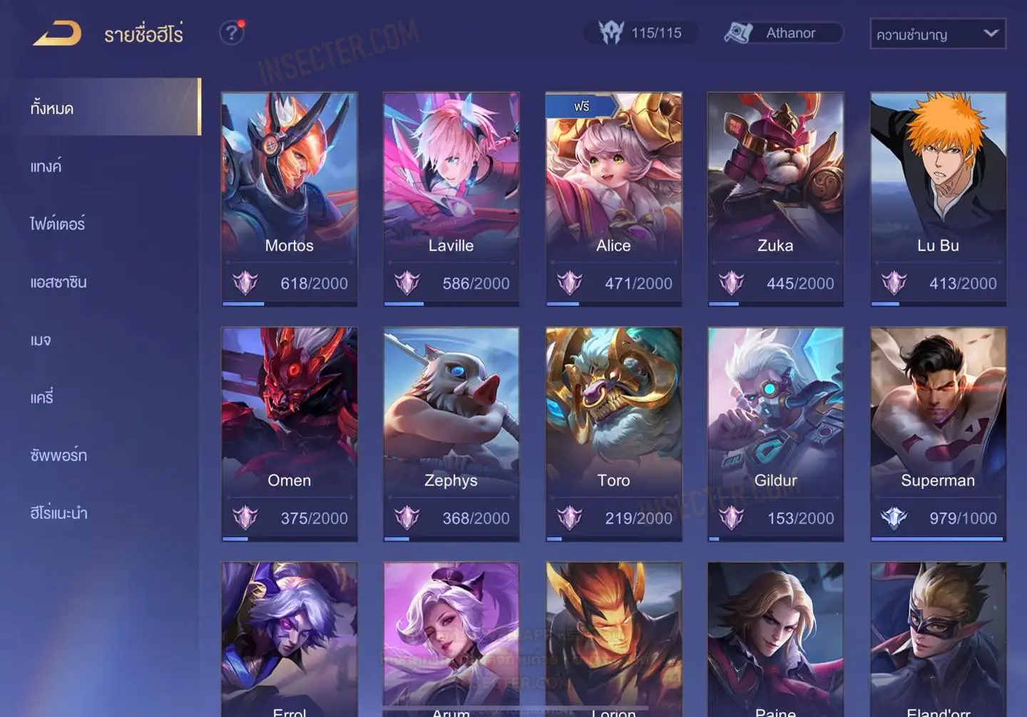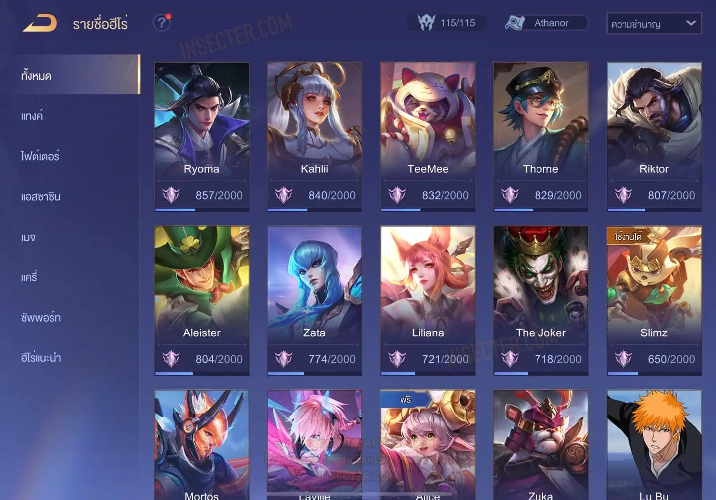 ข้อมูลย่อ : HERO 115 SKIN 431 สกินแรร์ RAZ Super Striker รูน 30 หน้า