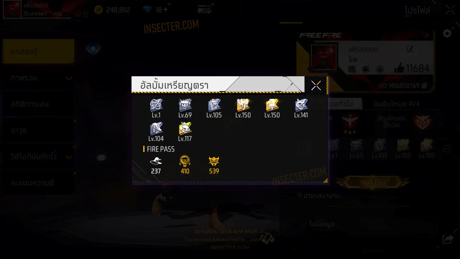 ข้อมูลย่อ : ปืuทำ7/13ได้ 7/12 1/1 ซองเวล8 แน่นทั้งชายและหญิงเติมเป็นแสน ซองชิบะ ซองยาวเขียว ควงเวล7 ควงอีโว6กระบอก ควงม่วง หมัด6 โลกันต์/ไซ/มังกร/แมงป่อง/Limitles/ม่วง ไอซ์วอลเปลี่ยนสี หมวกF ปีกนกแดง ปีกนกทอง กากไฟคู่ หัวจันทรา จิ้งจอกขาวญ. จิ้งจอกแดงญ. ชุดลิมิเต็ดอิดิชั่น แต่งงานชาย OGแดง บอลซี่ สักทองญ. กันฝน เวน่อม พี่ตูน ชุดกล้าม คาบูกิ ลายกระดูก แจ๊คเก๊ตบลู หัวเม๊กขาว สักดำ กันฝน อาบน้ำ กะลาสี กริมมี่ เรดไรท์ญ. เสื้อเวล70 ตาสายฟ้า ตาม่วง เกงปาเต ชุดอื่นๆเยอะมาก บัตรสร้างห้อง 50ใบ เปิดตัว7 แปลงร่าง1 ท่่าผีน้อย ตีนหมี4สี สกายวิงมังกรเวหา ลูกแก้ว6 บัตรเปลี่ยนชื่อ2