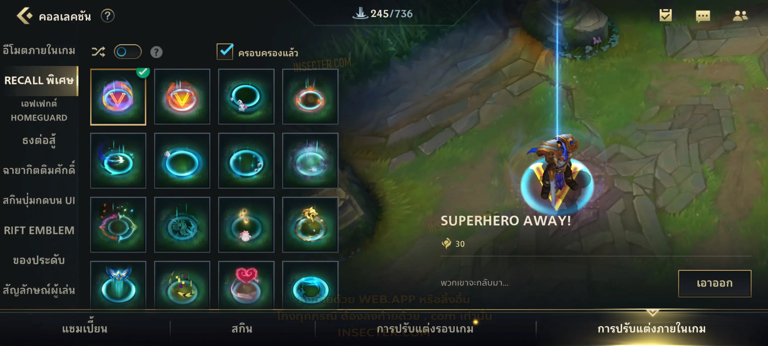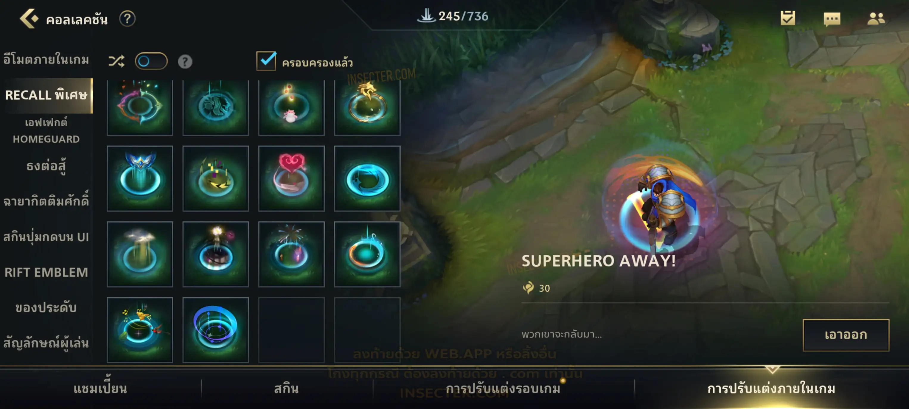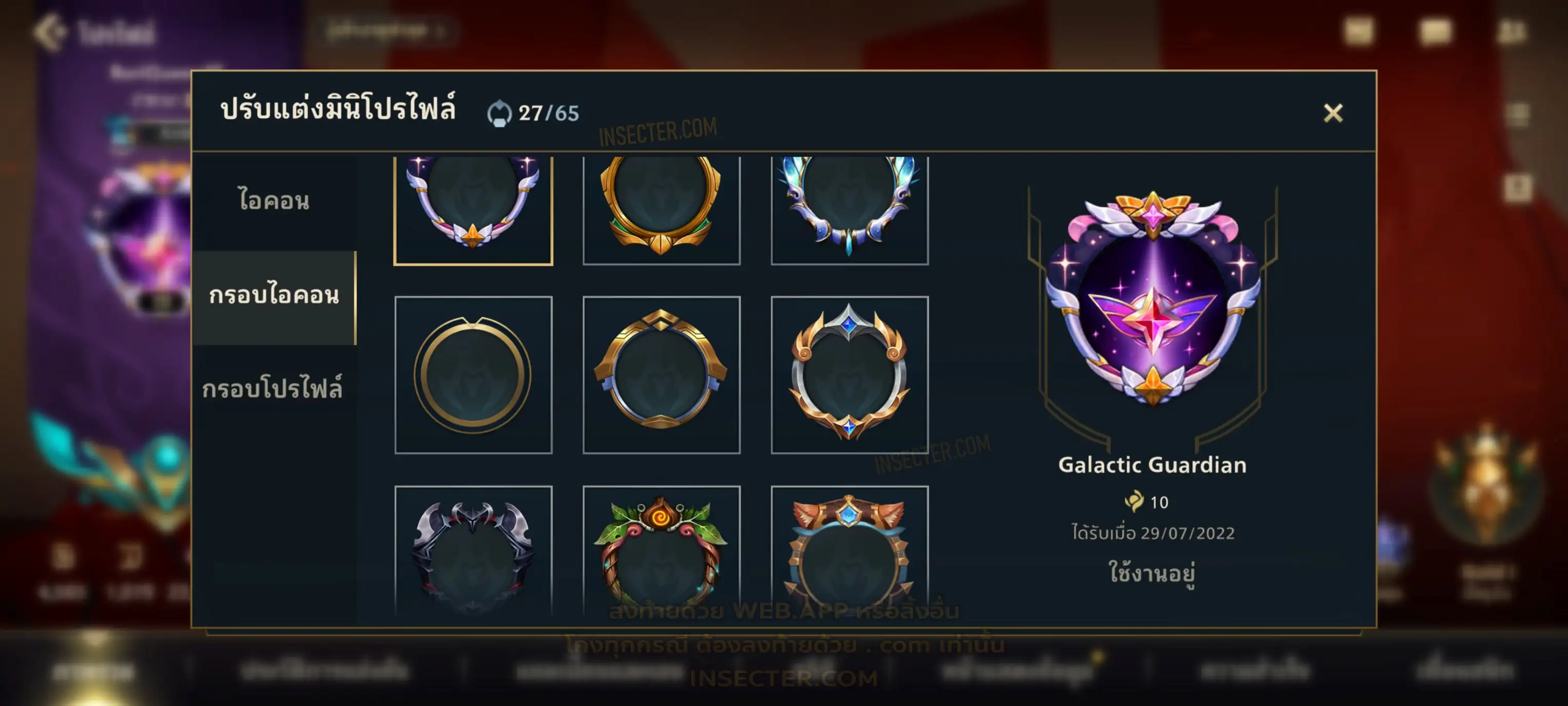 ข้อมูลย่อ : เมน MID-AD-TOP แชมครบของตกแต่งเยอะมีลิมิเต็ด 5 สกินคุ้ม ๆ จ้า ราคา 2,700 บาท 106/106 >แชมเปี้ยน 126 >สกิน 20 >Legendary (กรอบลิมิเต็ด 3 กรอบ) 69 >Epic (กรอบลิมิเต็ด 3 กรอบ+ท่าโพสพิเศษ 3 ท่า) 37 >อื่นๆ (กรอบลิมิเต็ด 6 กรอบ + ท่าโพสพิเศษ 2 ท่า)