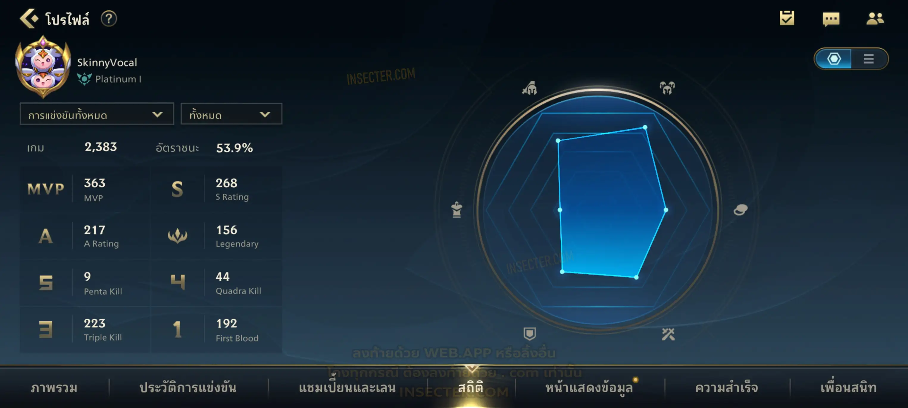 ข้อมูลย่อ : เมน MID-SUP-AD แชมเยอะ เน้นสกินผู้หญิงสวย ๆ คุ้ม ๆ เลยจ้า 96/105 >แชมเปี้ยน 79 >สกิน 7 >Legendary (กรอบลิมิเต็ด 2 กรอบ+ท่าโพสพิเศษ 2 ท่า '' เป็นแบบกดในเกมได้ 1ท่า '') 45 >Epic (กรอบลิมิเต็ด 6 กรอบ+ท่าโพสพิเศษ 3 ท่า) 27 >อื่นๆ (กรอบลิมิเต็ด 7 กรอบ+ท่าโพสพิเศษ 2 ท่า)