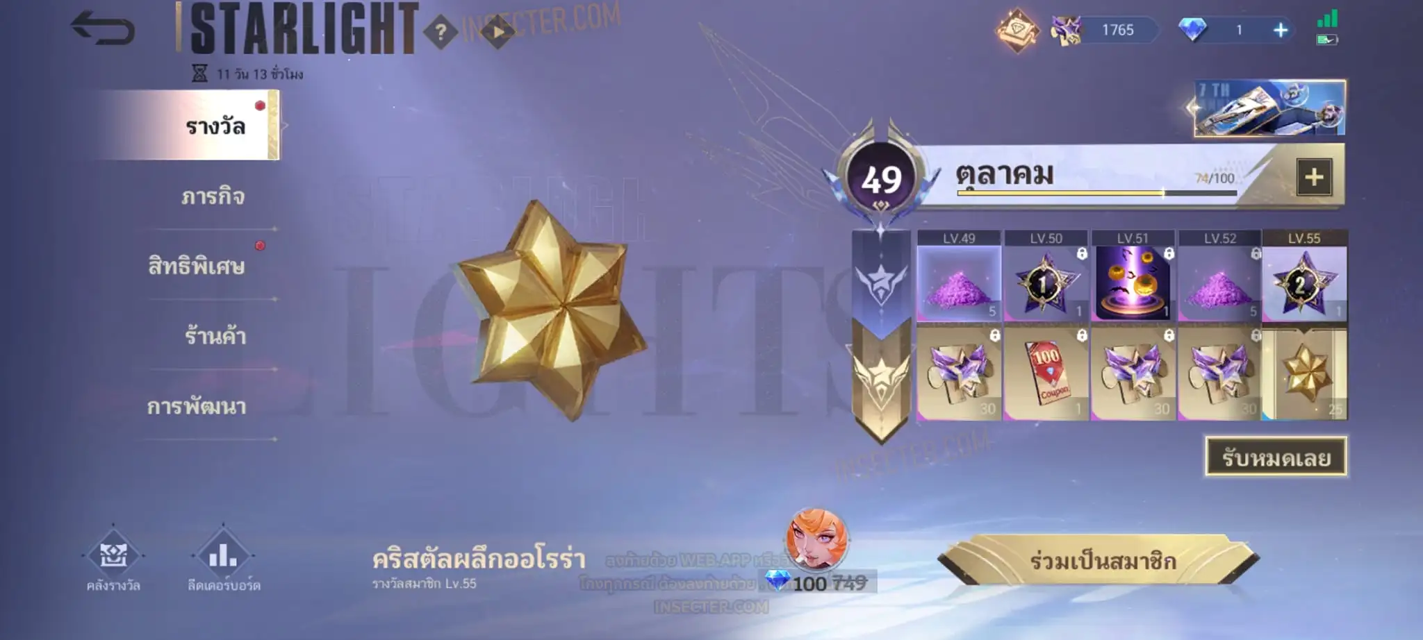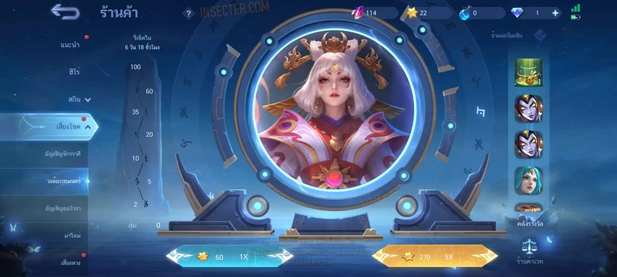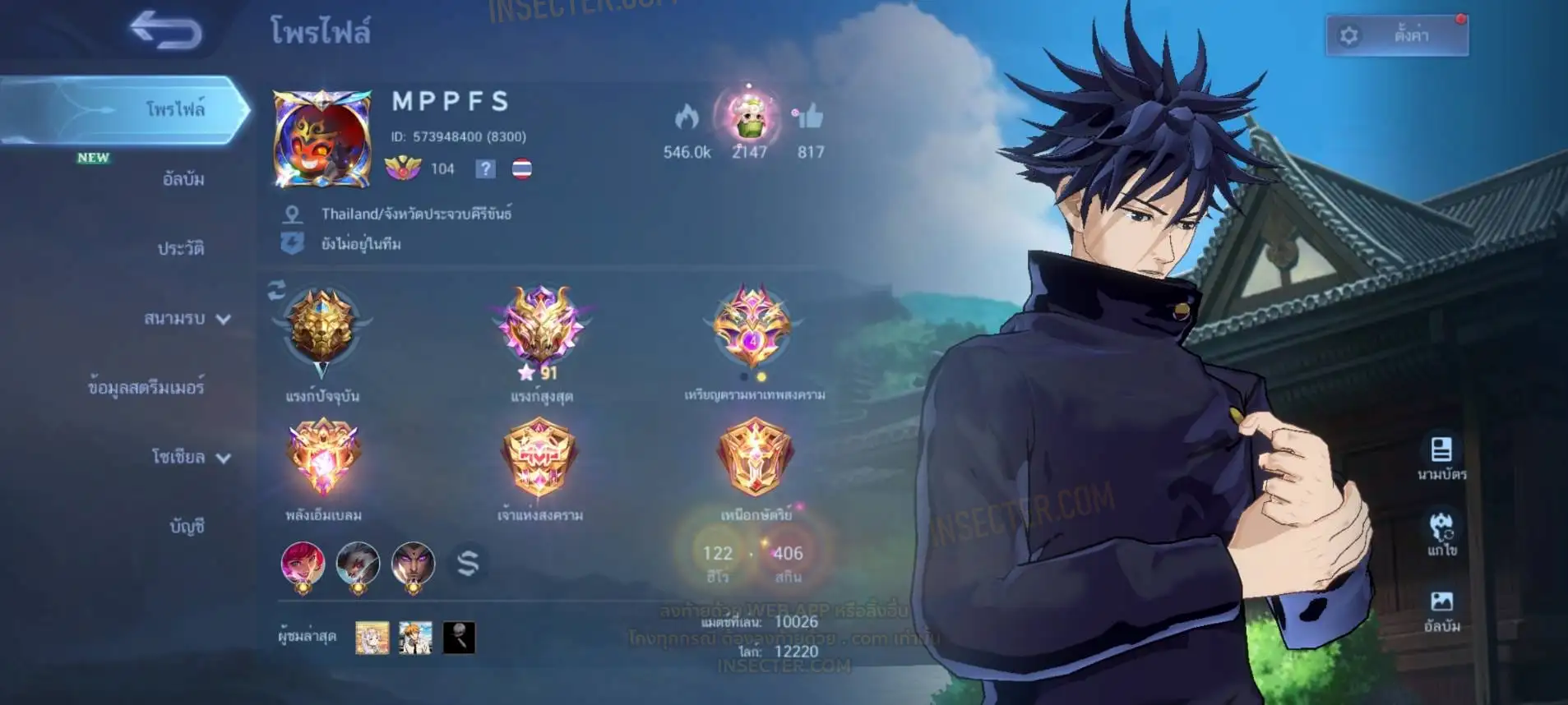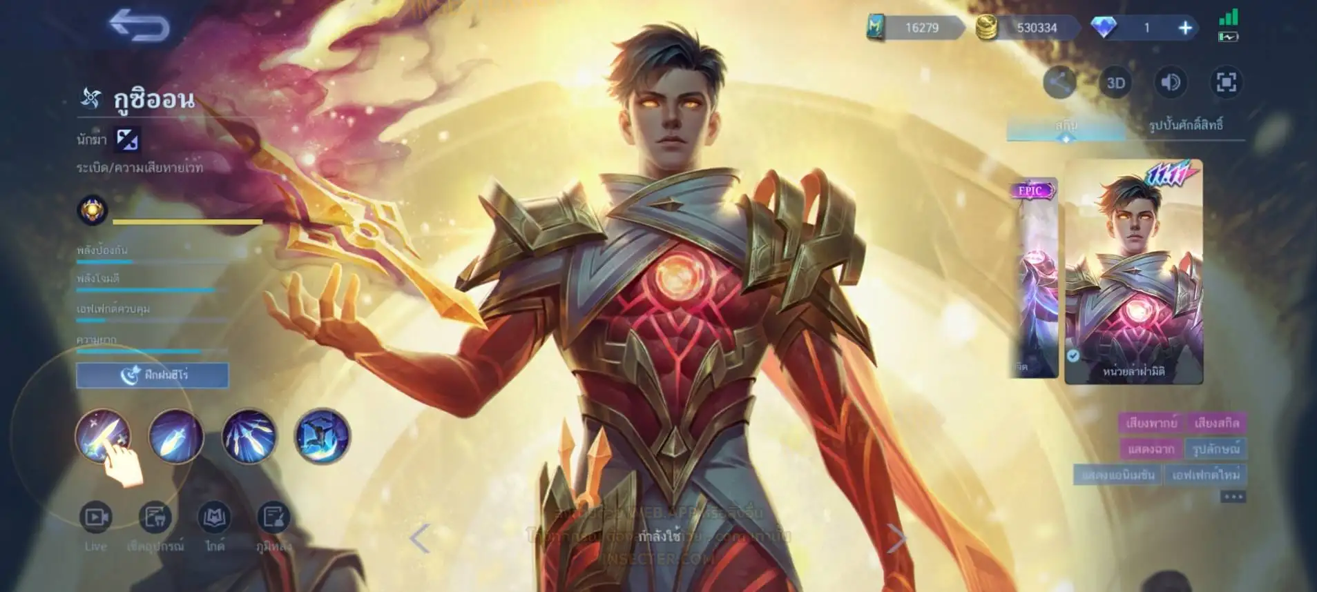ข้อมูลย่อ : Hero 122 Skin 406 เอ็มเบลตัน/กรอบรูป Zodiac !!! วาร์ปแรร์ผนึกเวทย์สายฟ้า Epic ถาวร !!! วาร์ปแรร์ดอกผนึกนิรันดร์ Epic ถาวร !!! ตั๋ว 16,000 ทอง 530,000 แต้มราศี 61 (ครบ 100 แลก Skin Zodiac 1 ตัว) แก่นพลังเวท 114 (ครบ 200 แลก Skin Legend 1 ตัว) Legend 2 ตัว Collector 1 ตัว อนิเมะ 26 ตัว Zodiac 11/13 ตัว !!! M2/M3/M4/Prime 4 ตัว Epic แรร์/ธรรมดา 21 ตัว ถ่ายมาบางส่วนยังไม่รวม Special/Ster/MSC/Christmas/Valentine/Halloween/AS/515/Create/Season คอลเลคชั่นอื่นๆ