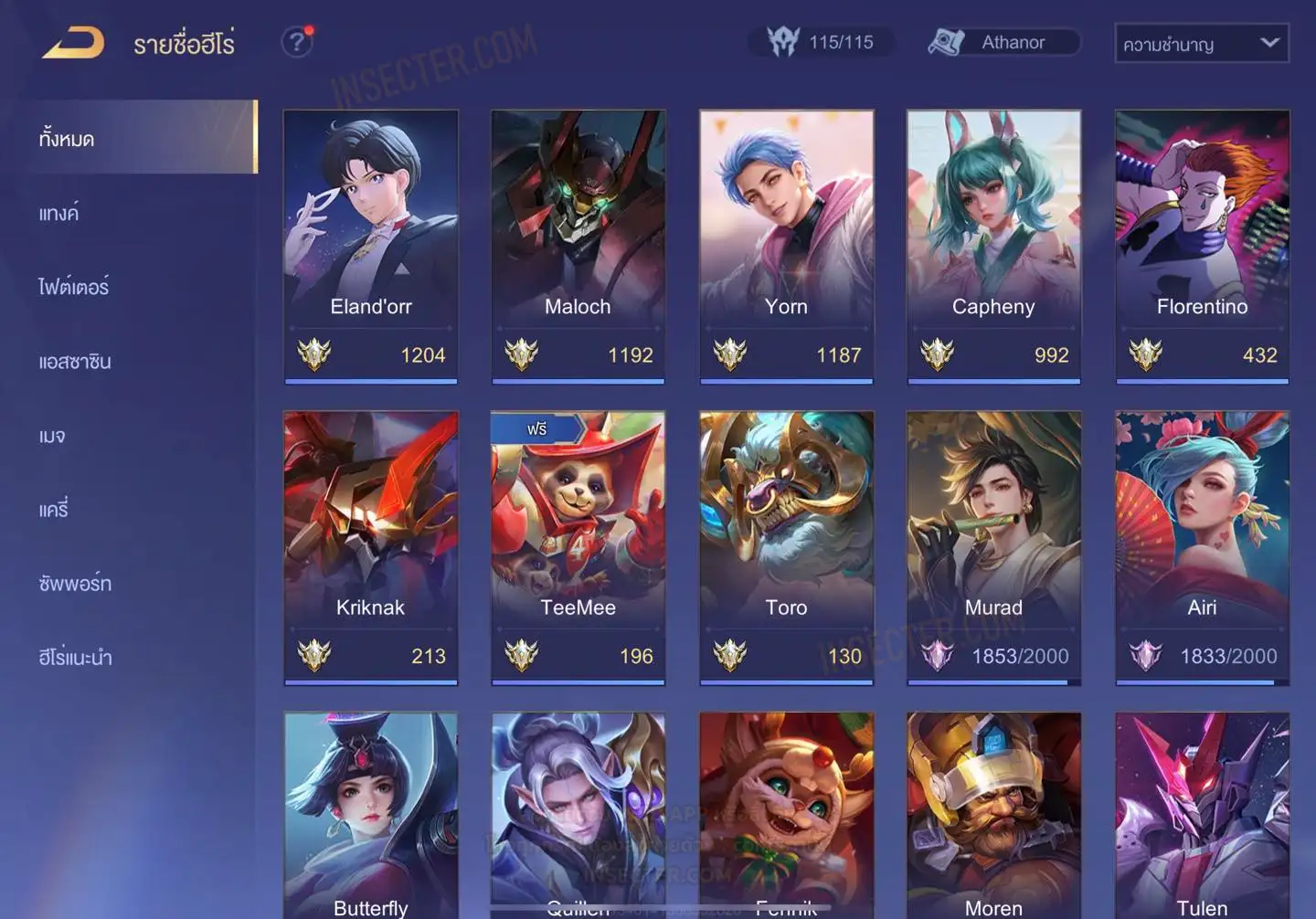 ข้อมูลย่อ : HERO 115 SKIN 395 สกินแรร์อนิเมะครบ รูน 30 หน้า