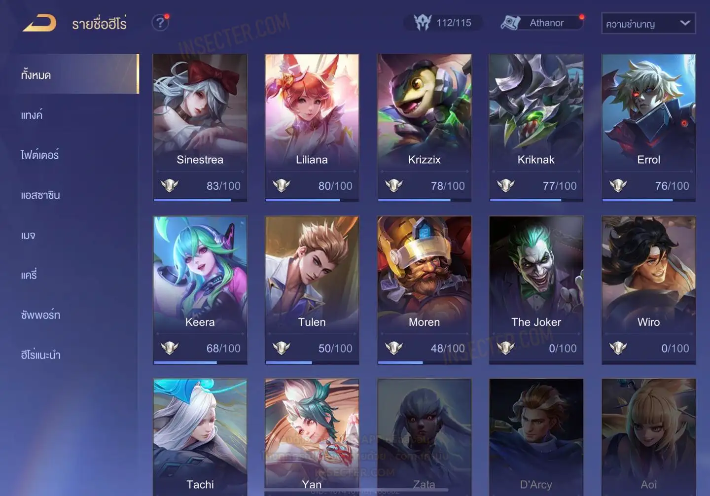 ข้อมูลย่อ : HERO 112 SKIN 238 สกินแรร์ นาครอสอนิเมะ รอเรียลอนิเมะ เทลอนิเมะ รูน 20 หน้า