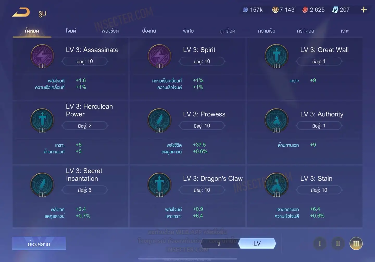 ข้อมูลย่อ : HERO 115 SKIN 263 สกินแรร์เพียบ รูน 30 หน้า