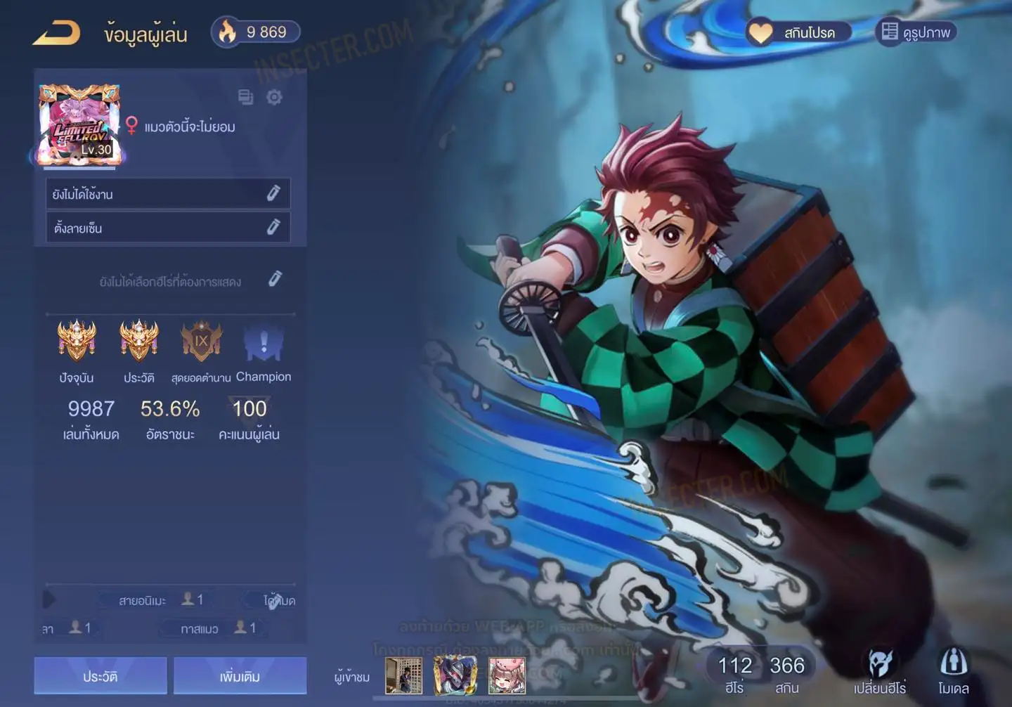 ข้อมูลย่อ : HERO 112 SKIN 366 สกินแรร์ทันจิโร่ เทลหุ่นยนต์ รูน 30 หน้า